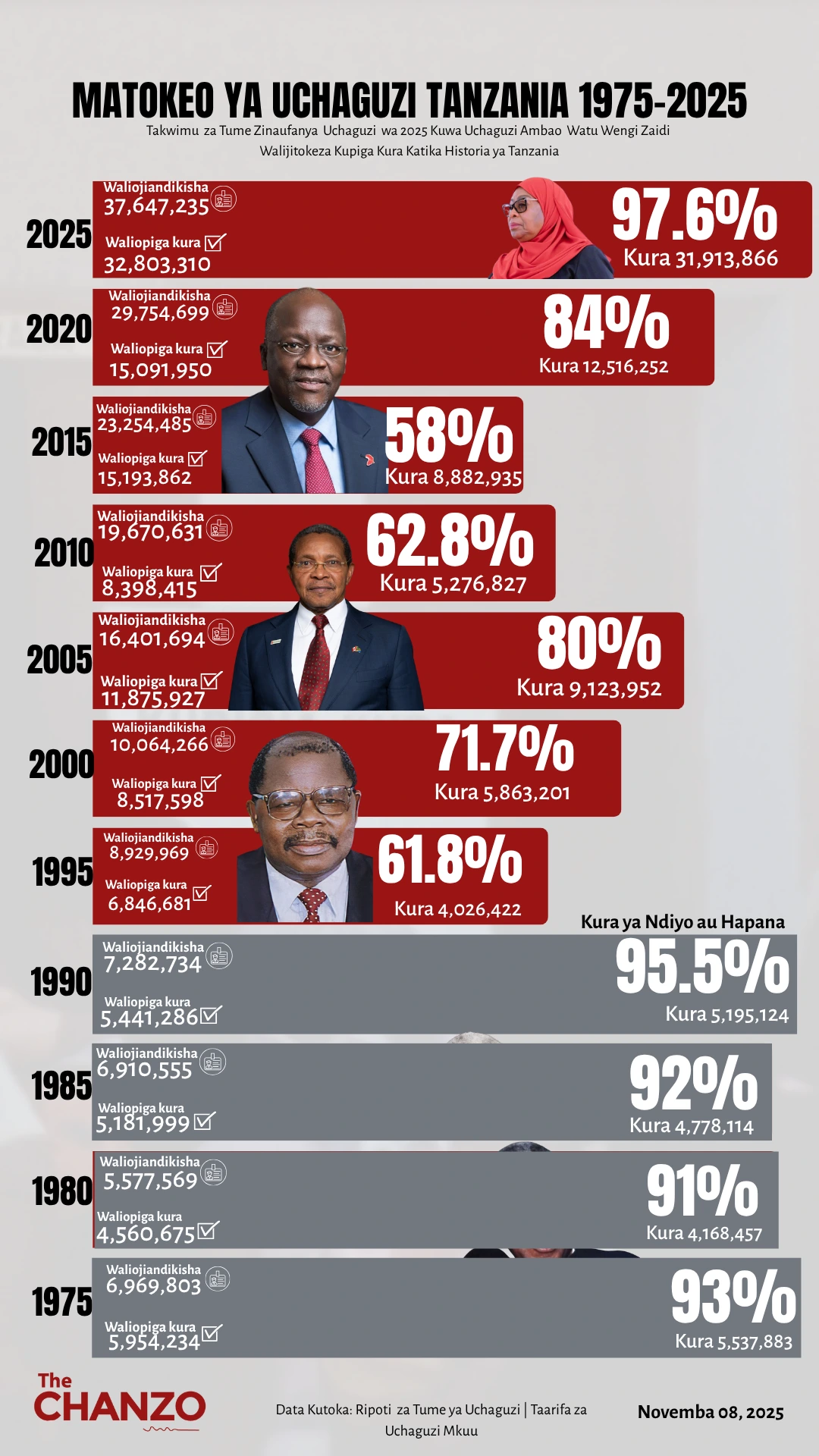Takwimu za Uchaguzi za mwaka 2025 zinaonesha uchaguzi wa mwaka huu, kuwa ni uchaguzi ambao watu wengi zaidi wamejitokeza kupiga kura, katika historia ya Tanzania.