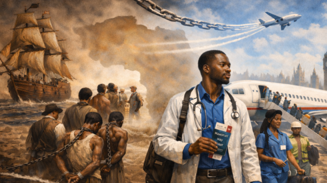 Western visas and English tests have replaced slave ships—draining Africa of 70,000 skilled workers each year while its hospitals and industries collapse.